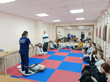 23 апреля сотрудники КУЗ ВО «ВОКЦМК»: и.о. заведующего отделением Чижиков Александр Викторович и специалист центра Дерябин Демид Иванович провели для студентов выпускных групп специальности «Лечебное дело» и «Стоматология ортопедическая» мастер – класс по оказанию первой доврачебной помощи в экстренных случаях.
