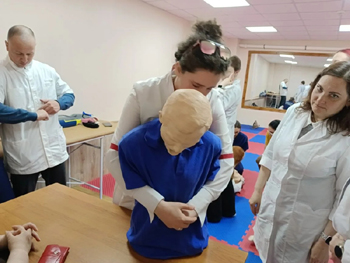 Сегодня сотрудники КУЗ ВО «ВОКЦМК»: и.о. заведующего отделением Чижиков Александр Викторович и специалист центра Дерябин Демид Иванович провели для студентов выпускных групп специальности «Лечебное дело» и «Стоматология ортопедическая» мастер – класс по оказанию первой доврачебной помощи в экстренных случаях: сердечно-легочная реанимация, экстренная помощь при кровотечениях и мероприятия по извлечению инородного тела из дыхательных путей.