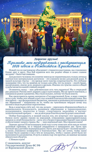 Новогоднее поздравление от депутата Государственной Думы ФС РФ от Воронежской области Чижова Сергея Викторовича.